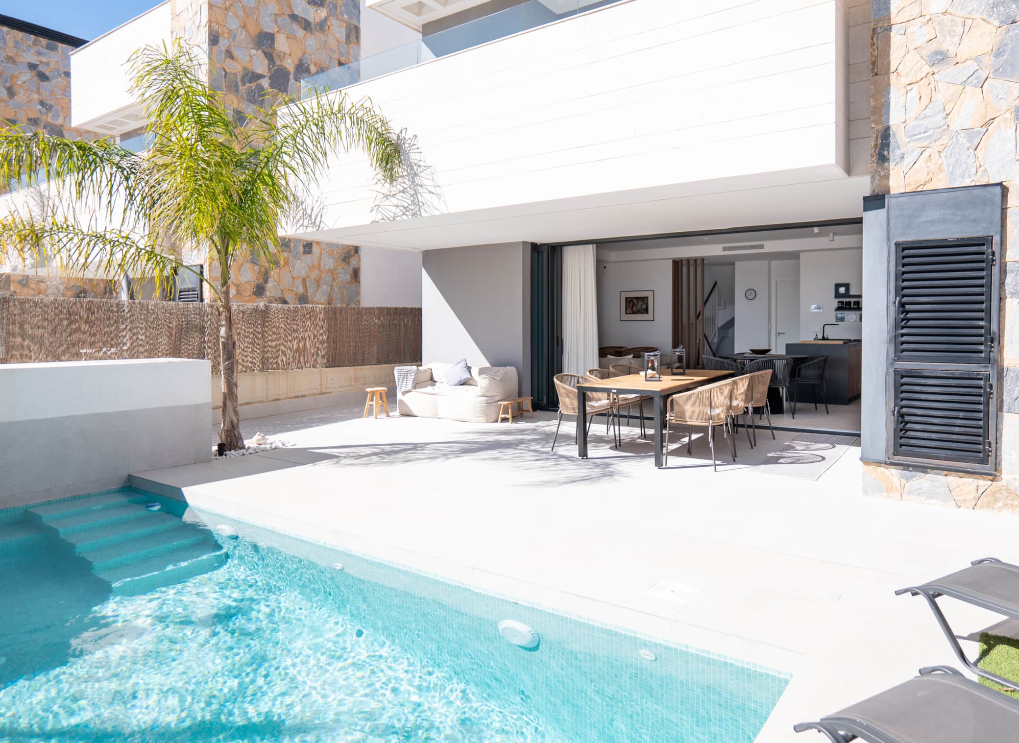 This modern Almendro villa offers comfort, space, and a practical layout. The villa is well suited for families or guests looking for a comfortable holiday home near Los Alcázares.